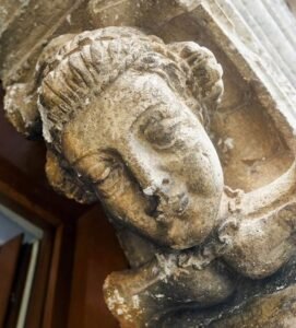 A la derecha, puedes ver un busto de doña Isabel en un ventanal de la fachada del palacio de Saldañuelas.