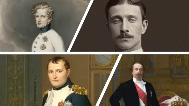 El único hijo de Napoleón III y de la española Eugenia de Montijo tampoco tuvo mejor suerte que sus antecesores. Vivió en el exilio desde los catorce años. Tras la muerte de su padre, su madre luchó y conspiró incansablemente para restaurar a su hijo en el trono; de hecho, los legitimistas le llamaron Napoleón III, pero los sueños de grandeza se truncaron pronto.